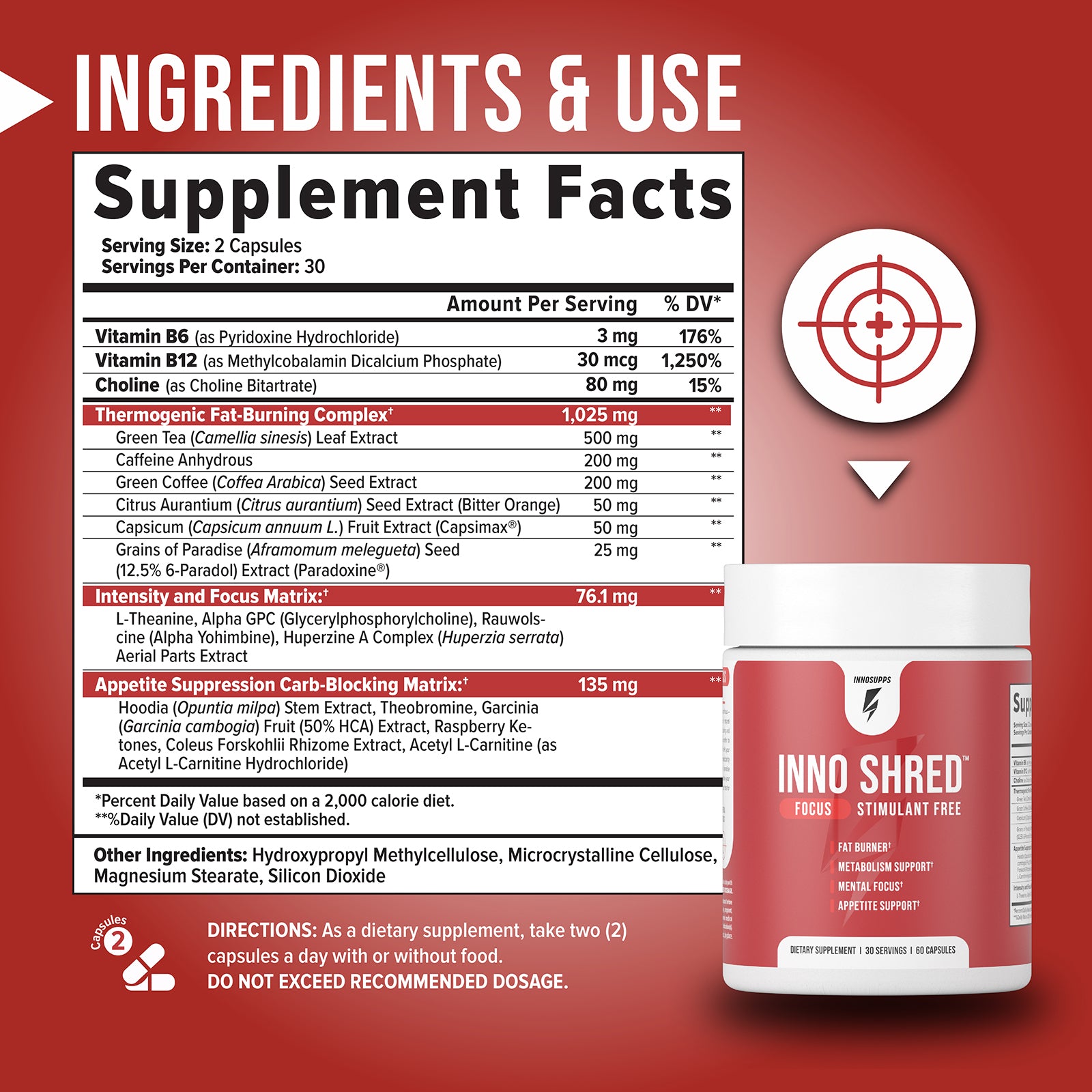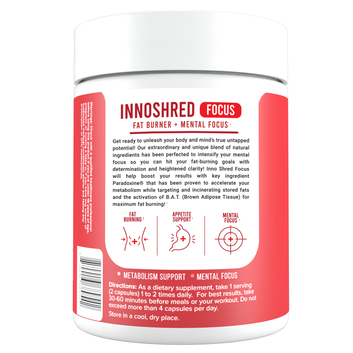 Burning Fat, improving the metabolism, and helping mildly curb your appetite is exactly what Inno Shred Focus is designed for. Our formula contains extremely effective fat burning and metabolism igniting ingredients. We can’t wait to hear about your results after you try it.*