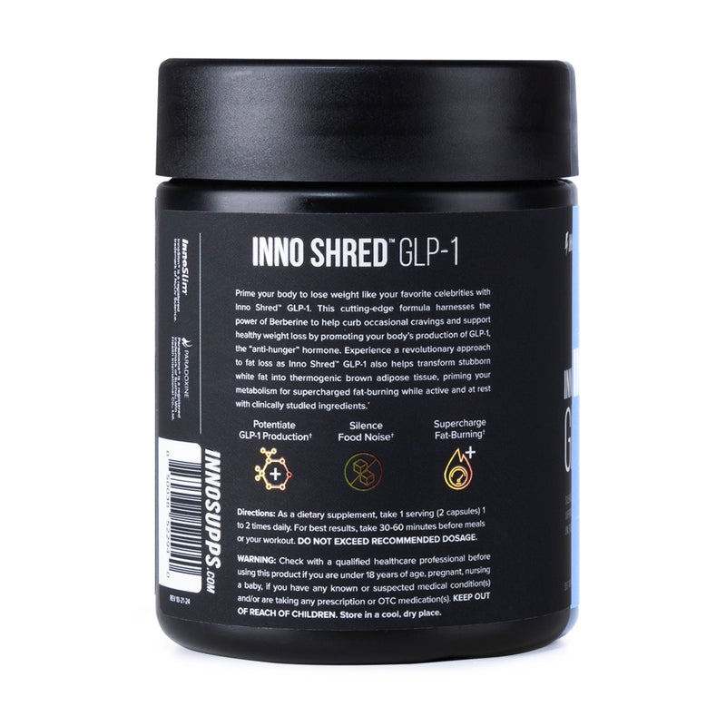 Inno Shred™ GLP-1 features powerful ingredients like Berberine Hydrochloride and InnoSlim® to stimulate your body’s natural GLP-1 production. This key hormone helps keep unwanted food urges in check, making it easier to stay on track while supporting your body’s fat-burning potential.*
