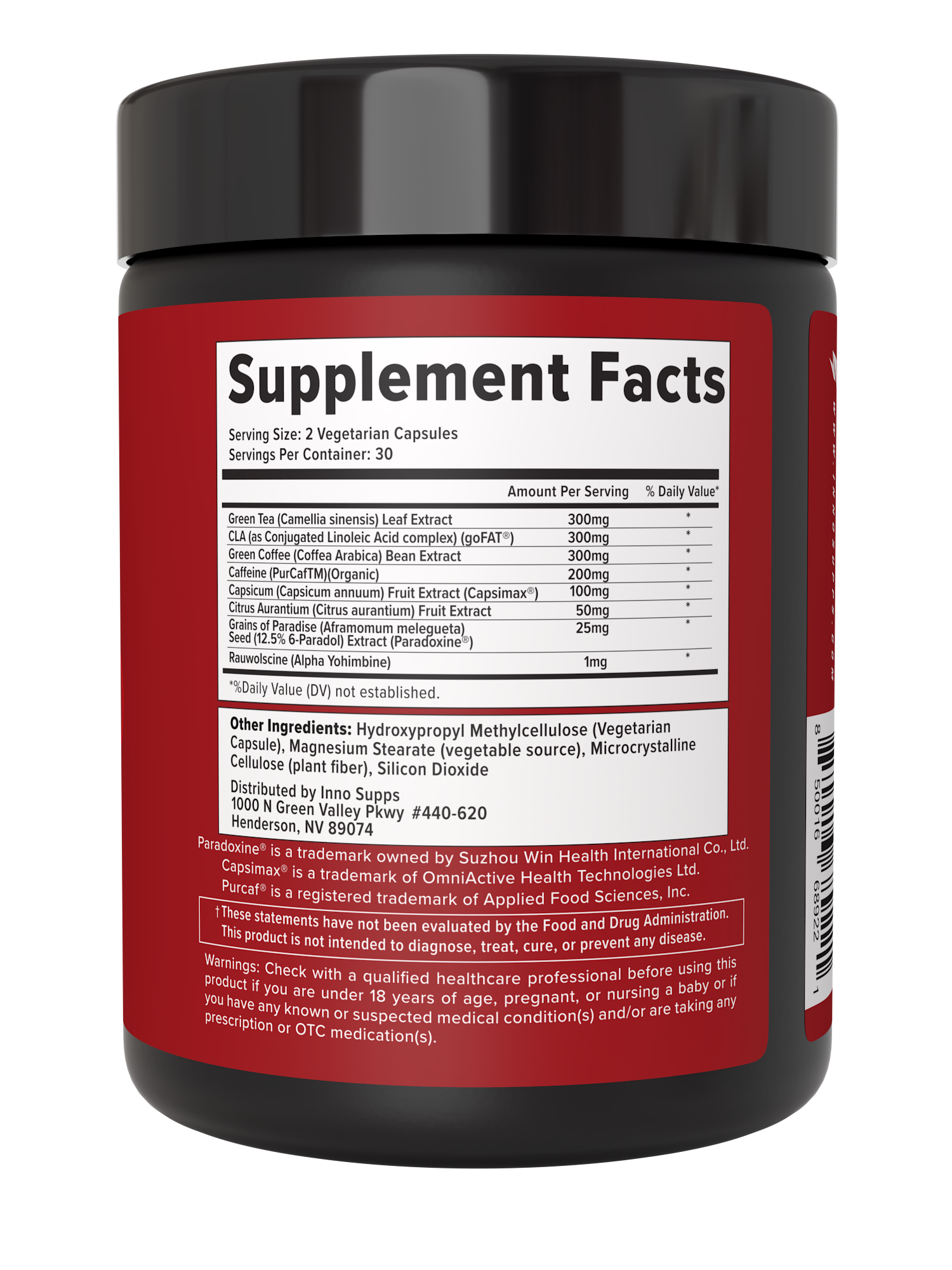 Inno Shred contains several, POTENT natural ingredients but Capsimax and Grains of Paradise are responsible for 95% of the around-the-clock fat burning that Inno Shred will produce.
