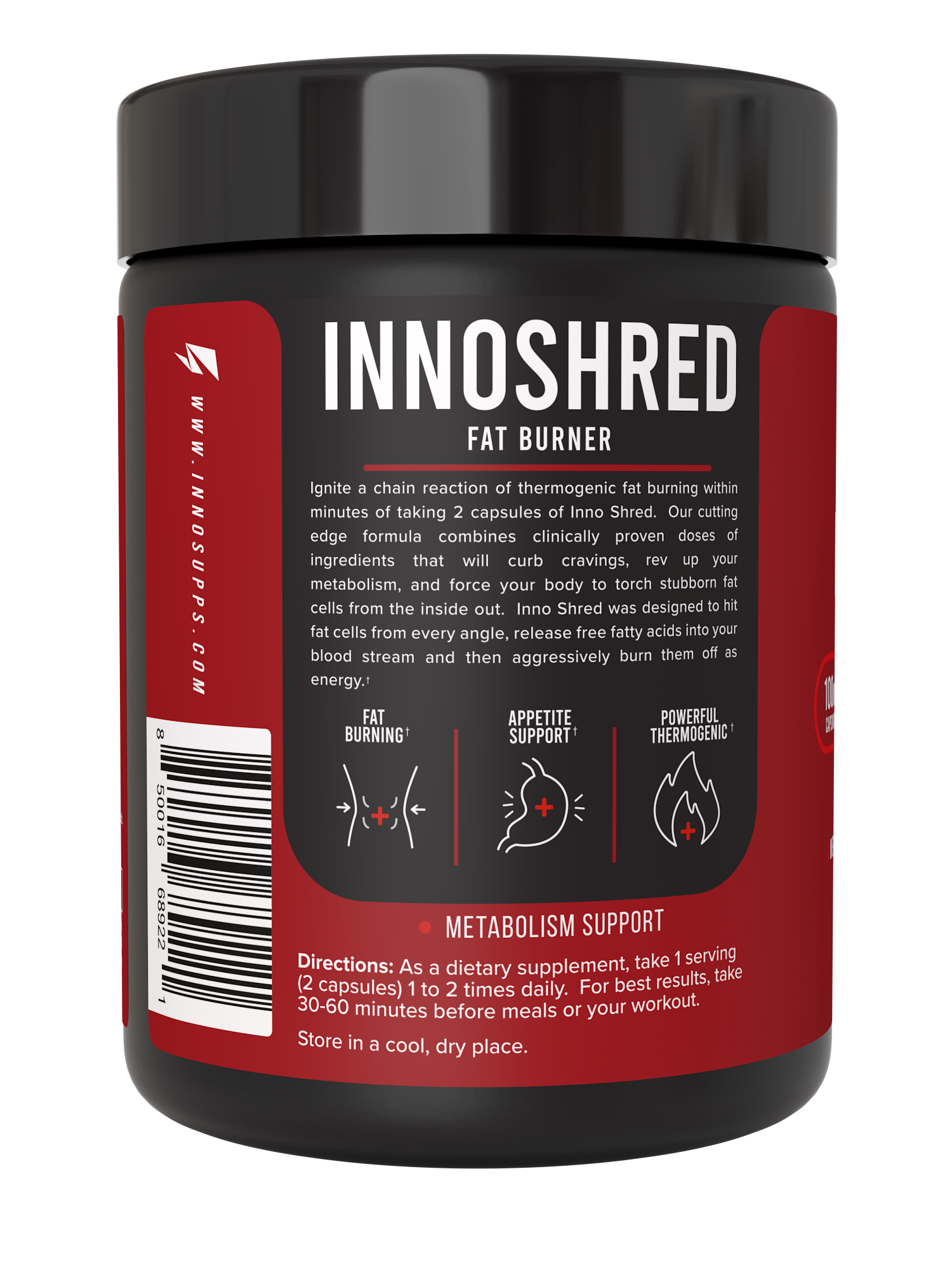 Inno Shred is a powerful thermogenic fat burner that will improve lipolysis 24/7. Taking just 2 capsules a day will result in more calories and stored body fat being burned around the clock.