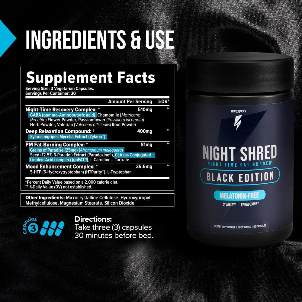 PRIME THE BODY FOR EXTREME RELAXATION, DEEP SLEEP AND FAT-BURNING WITH NIGHT SHRED BLACK