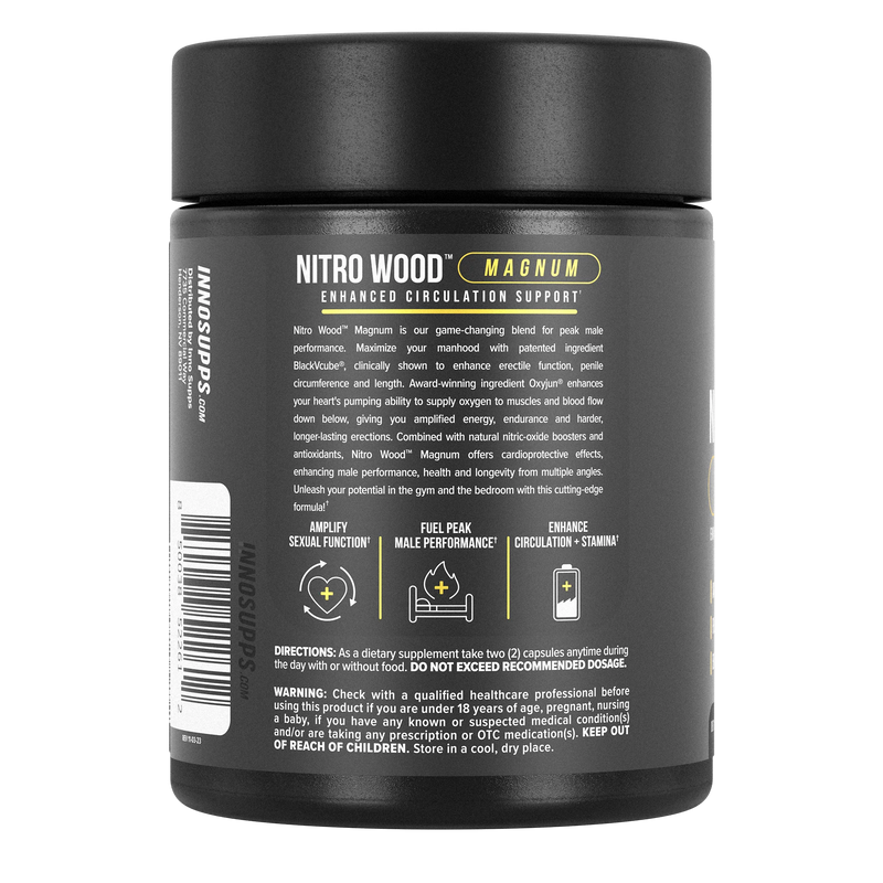 Wood™ Magnum?We recommend 2 capsules a day with or without food. For optimal results, we recommend taking Nitro Wood™ Magnum for at least 90-180 days to see results similar to those in the clinical studies on the ingredients in Nitro Wood™ Magnum, including improvements in length, circumference, response time, blood flow and cardiovascular health.*