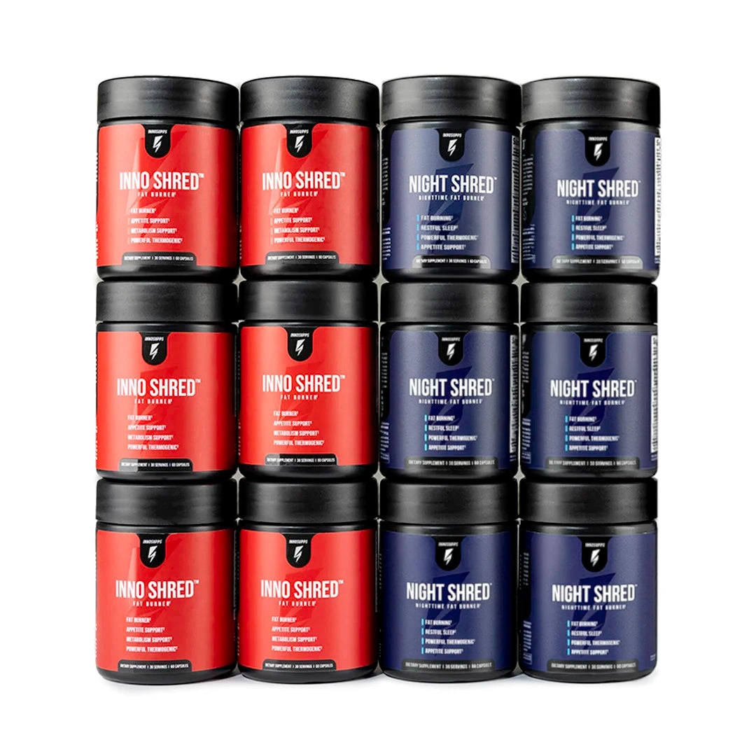 The AM/PM Thermo Stack is a powerful fat-burning duo designed for around-the-clock results. Featuring Inno Shred and Night Shred, these best-selling thermogenic fat burners provide ultimate fat loss from day to night.*