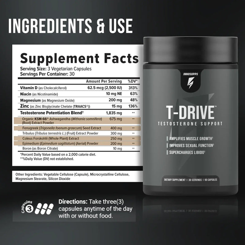 T-Drive™ is nature-based supplement that helps stimulate testosterone and vital hormones from within. We believe that men will see AMAZING RESULTS when given the correct stimulus and building blocks of herbs, vitamins and minerals to enhance male vitality.*