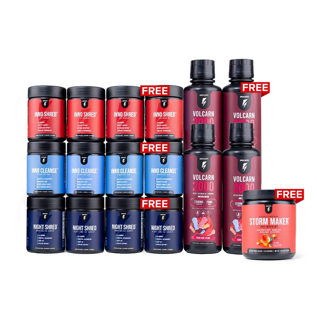 Inno Shred™, Volcarn 2000, and Night Shred™ can be taken in the same day together, but not at the same time! We recommend taking Night Shred™ six to eight hours after your last dose of Inno Shred™ and Volcarn 2000.